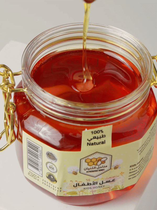 عسل الأطفال من مناحل الثنيان يتم استخلاصه بعناية من أجود خلايا النحل دون أي إضافات أو مواد حافظة لضمان حصول طفلك على منتج آمن ونقي بالإضافة الى انه غني بالعناصر الغذائية لتعزيز صحة طفلك ومنحه طاقة طبيعية يعتبر افضل عسل نحل للأطفال لما فيه من قيمة عالية وخصائص وقائية وعلاجية وكم كبير من الفيتامينات والمعادن والأحماض الأمينية المهمة للأطفال. بينما ننصح بتجنب العسل للأطفال أقل من سنة وللأطفال الرضع يعتبر العسل للأطفال بعد عمرالسنة خيارًا مثاليًا لتعزيز صحتهم، وضمان نموهم المثالي،فعسل الاطفال يساعد قي الوقاية من الإصابة بالكساح لما فيه من الفيتامينات وبقية مقومات النمو كما أنه يفتح الشهية ويحسن الصحة العامة لدى الطفل.